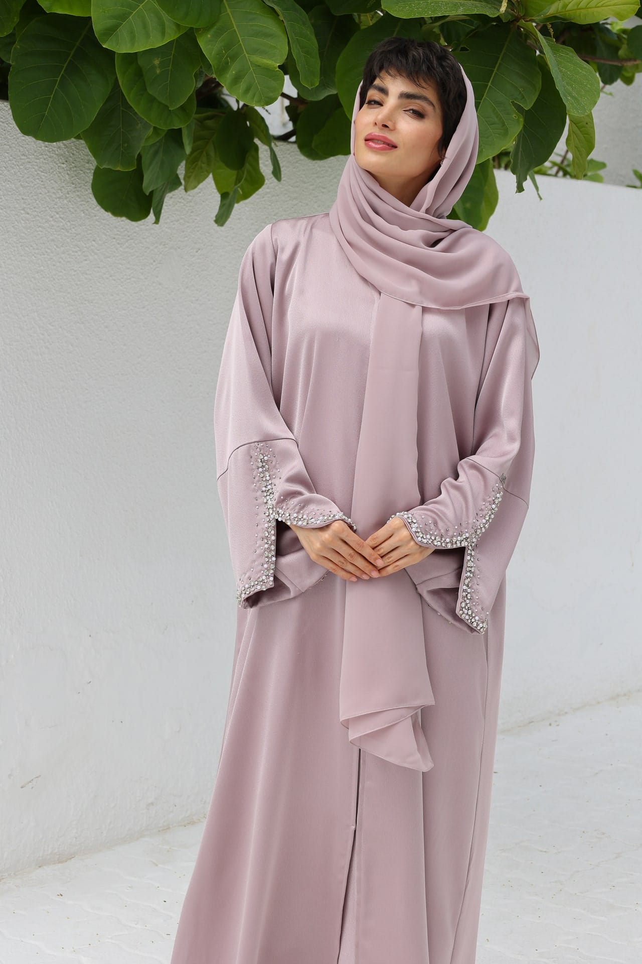 Jede Abaya wird inklusive passenden Kopftuch geliefert.