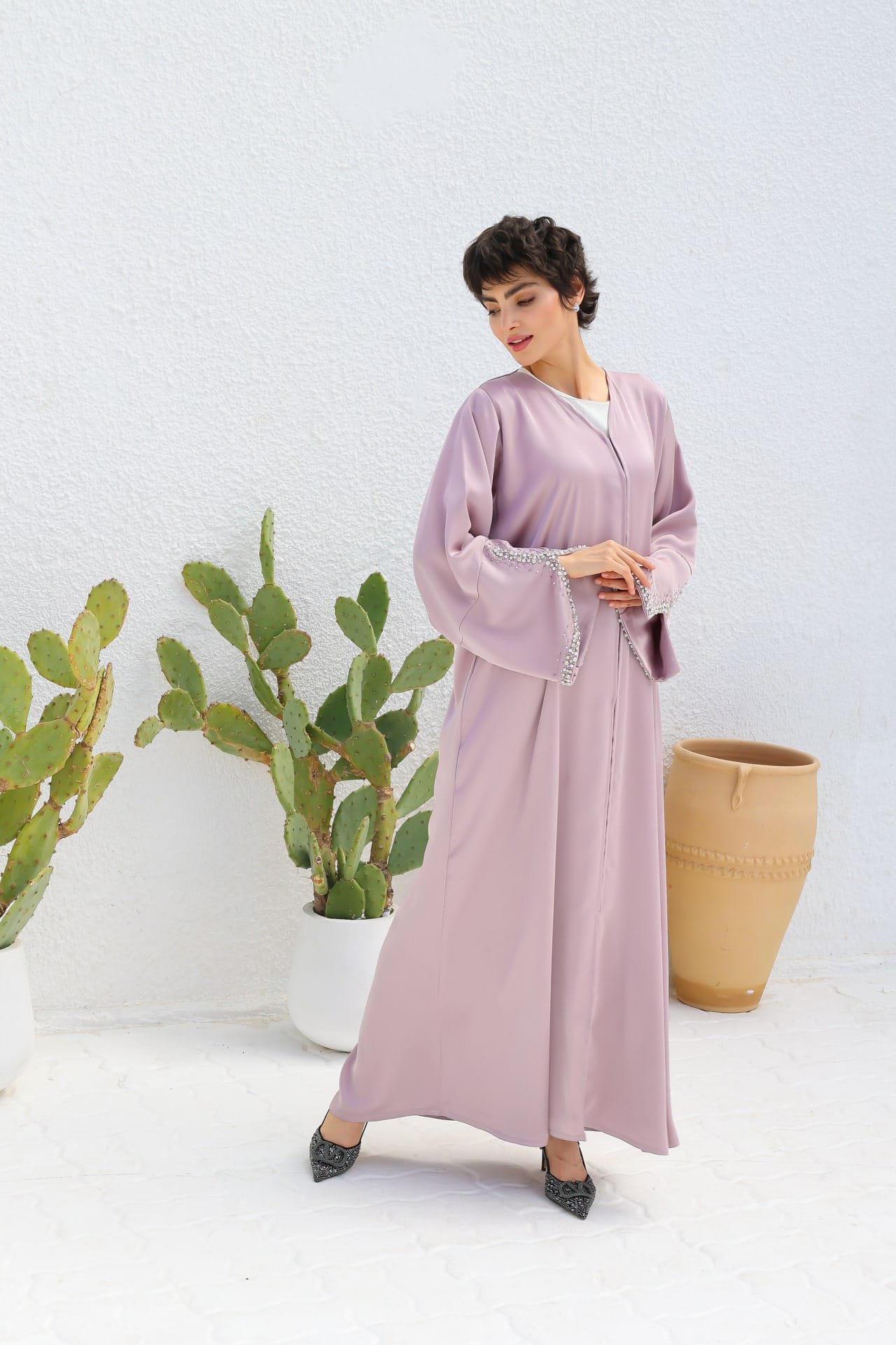 Inspiriert von Kairos zeitloser Schönheit verbindet diese Abaya traditionelle Anmut mit modernen Akzenten. Handgefertigt für dich, um an festlichen Anlässen, Hochzeiten und besondere Momenten zu strahlen.