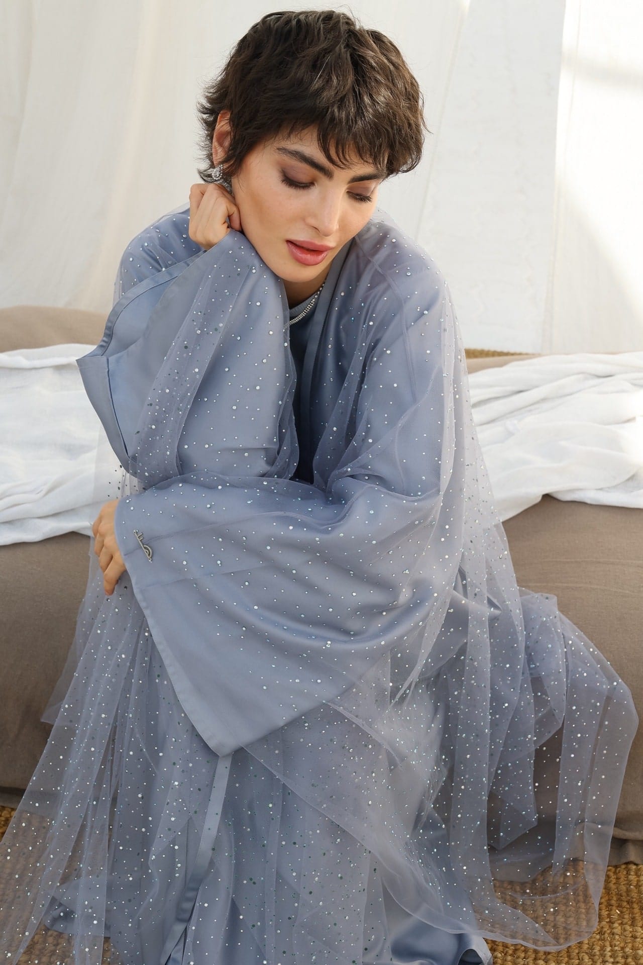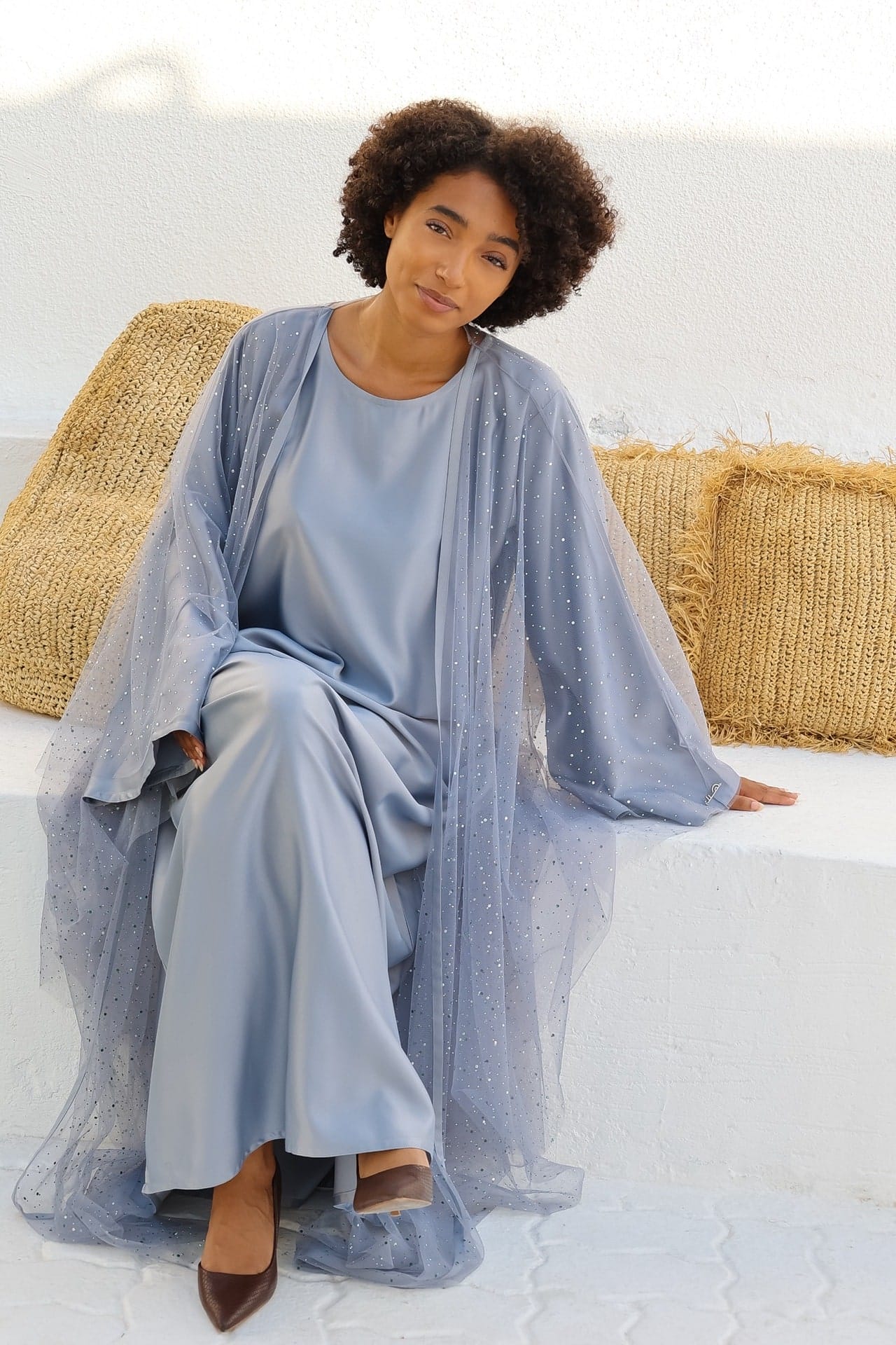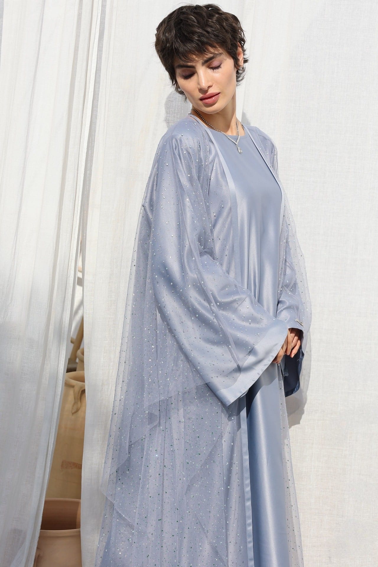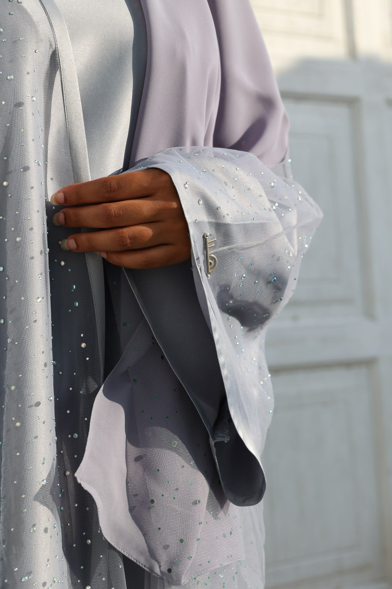 Inspiriert von der modernen Eleganz Dohas, verbindet diese Abaya Tradition mit zeitgemäßem Luxus – perfekt für Hochzeiten, Galas oder besondere Anlässe.